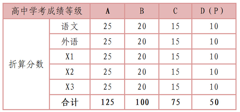 综合成绩=高中学考成绩等级(职业技能考试成绩)折算后总分+综合测评分