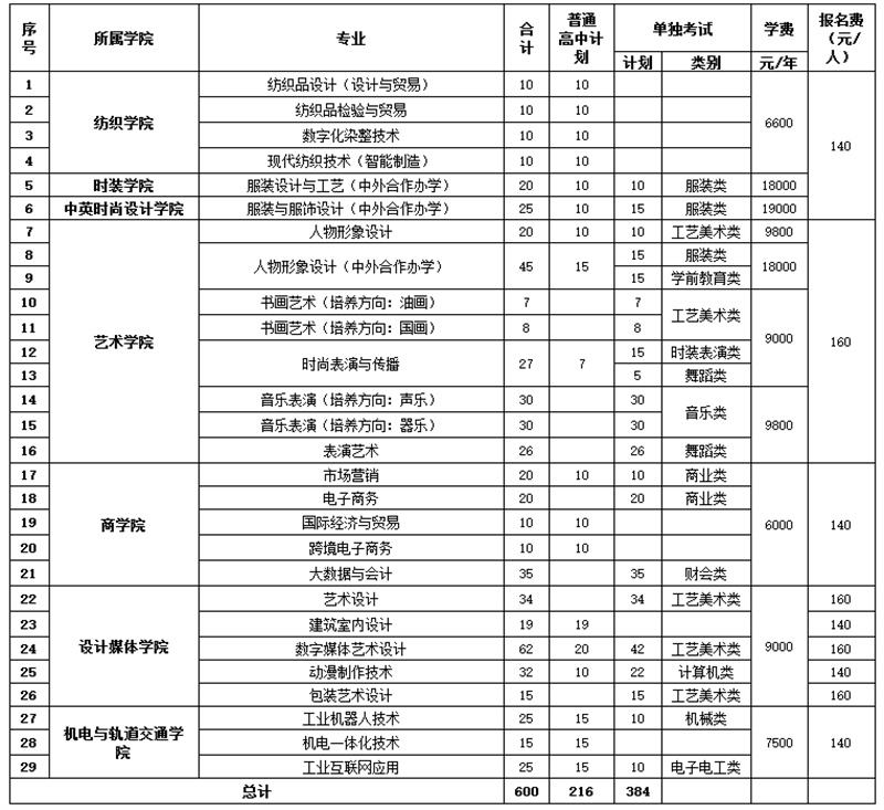 第四条 招生计划、专业、类别及学费如下: