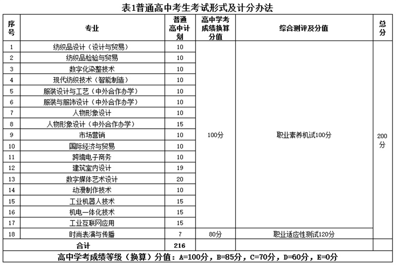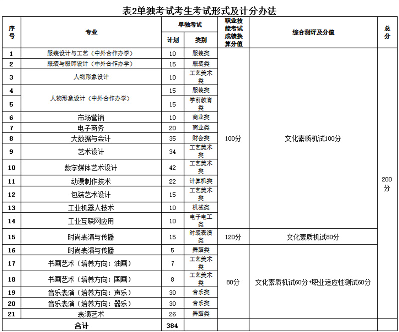 2.普通高中考生考试形式及计分办法(详见表1);单独考试考生考试形式及计分办法(详见表2)。