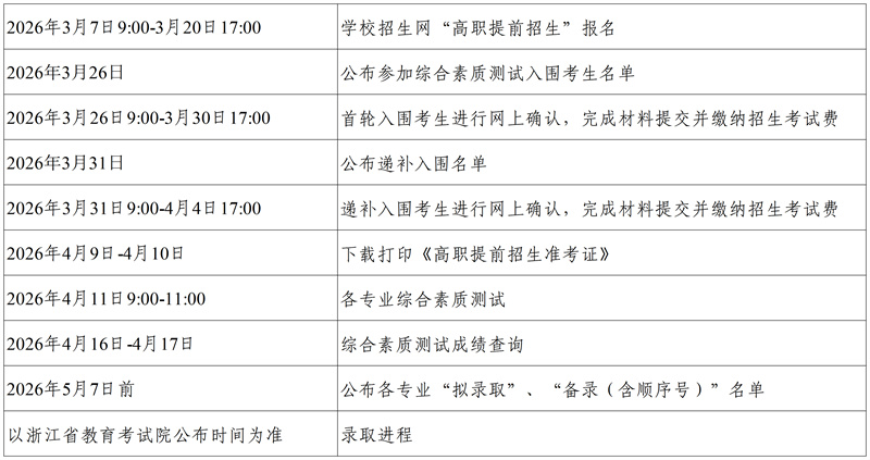附:杭州科技职业技术学院2026年高职提前招生实施进程安排