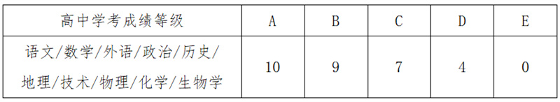 高中学考成绩换算分(满分100分)+综合素质测试成绩(满分100分)=总分(满分200分)