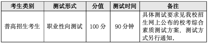 校考综合素质测试由我校根据专业培养目标的要求组织评定,综合评价考生职业性向。
