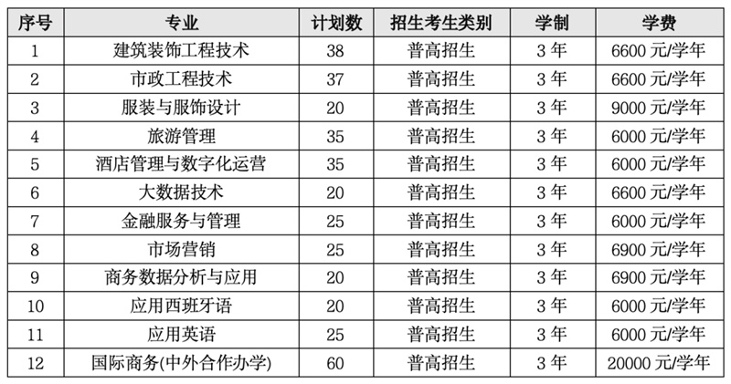 第四条 我校2026年面向浙江省高职提前招生计划共360人,均面向普高招生考生。具体分专业招生计划如下:
