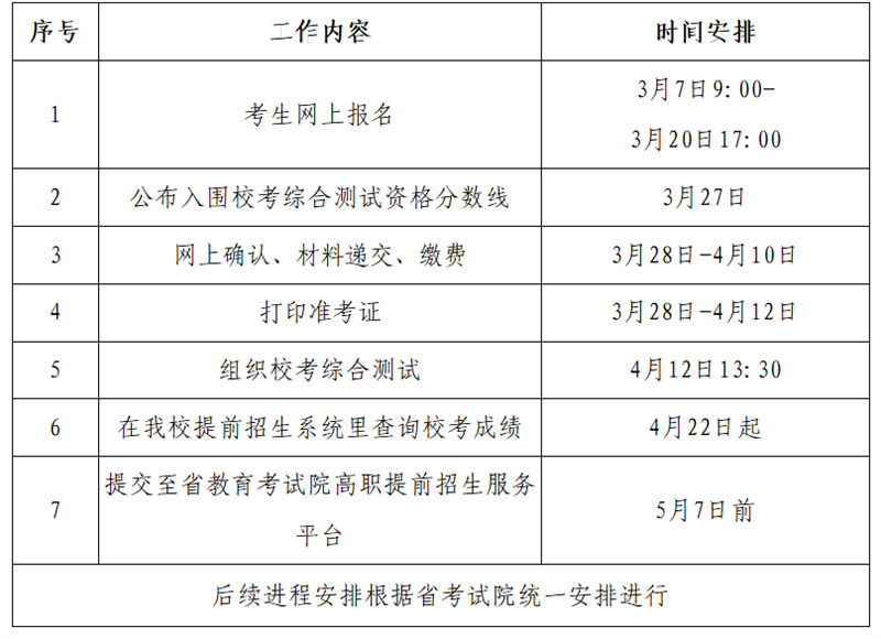 第三十五条 提前招生工作实施进程安排如下(如有变动,以学校招生网站公布为准)