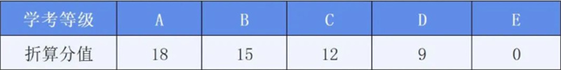 1.普高招生考生。选取十门学业水平考试等级(往届生技术科目成绩取通用技术和信息技术的平均分),根据下表折算,折算成绩满分为180分: