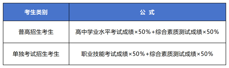 最终成绩由两部分组成,即最终成绩=高中学业水平考试成绩+综合素质测试成绩(操作技能测试/面试)。