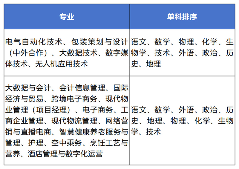(1)普高招生考生按操作技能测试/面试成绩高低区分,若相同,则按高中学业水平考试(学考)单科顺序和等级高低确定录取情况,单科顺序排列如下表: