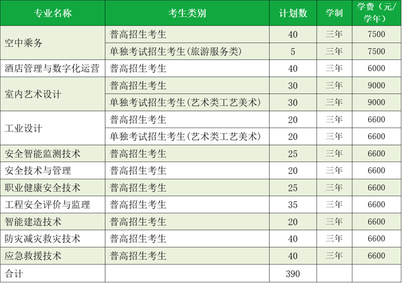 2026年面向浙江省提前招生计划390人,其中普高招生考生335人,单独考试招生考生55人,具体招生计划见表1:
