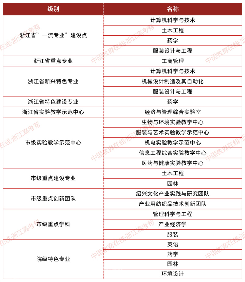 学院现有9个二级学院,32个本科专业,涵盖艺术学、理学、管理学、工学、法学、文学、经济学、农学八大学科门类。现拥有浙江省一流专业建设点4个,浙江省重点专业1个,浙江省新兴特色专业3个,浙江特色建设专业1个,市级重点建设专业2个,市级重点创新团队2个。