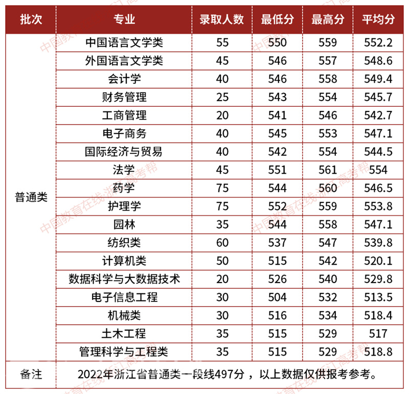绍兴文理学院元培学院2022年浙江省普通类专业投档分数线