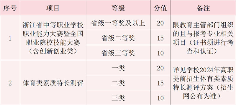 1.学校根据考生高中学考、浙江省高校招生职业技能考试有效成绩(含职业技能理论、职业技能操作考试成绩)以及招生专业考评要求进行综合评价。