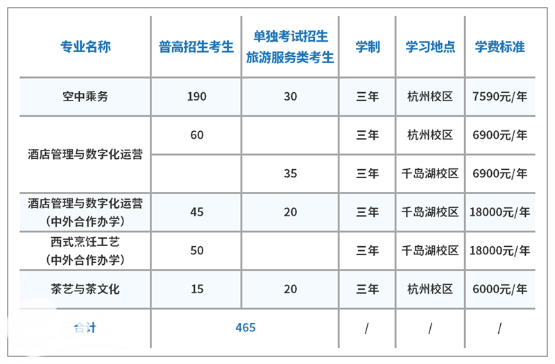 千岛湖校区:以国际化精英教育为办学理念,注重外语能力、服务技能、管理能力、职业素养的培养,旨在培养具有跨文化交流能力、适应国际知名品牌连锁酒店及相关行业所需要的高素质技能型的中层以上酒店管理与数字化运营与管理人才。