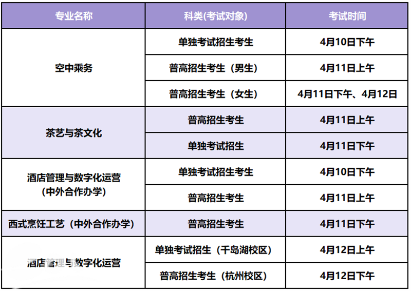 其他专业:分两个考场,一个为英语考场,考核英语发音及英语听说能力;一个为职业素养考场,对形象气质、职业素养等方面具体打分。考生单独进入考场,每人每个考场考试时间约3分钟。