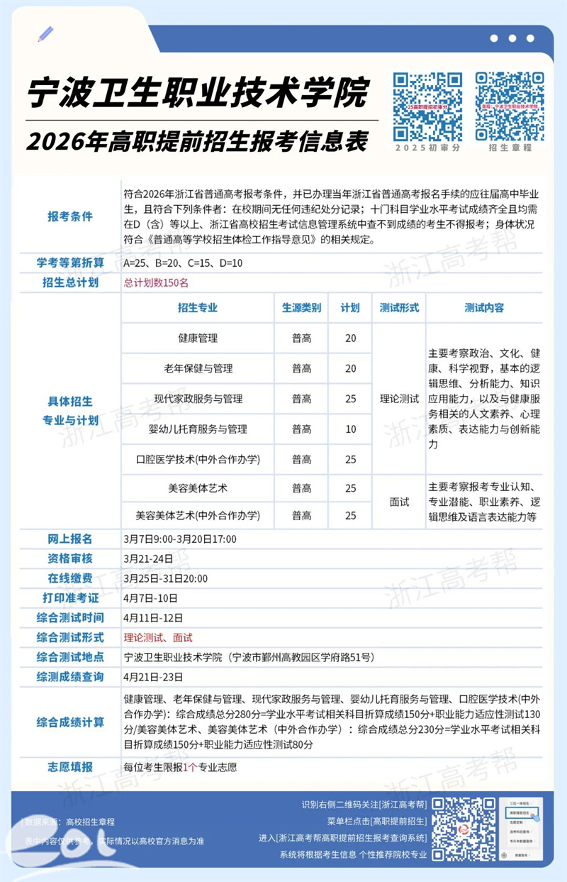 2026年高职提前招生报名正在进行中,你是否还在众多院校中徘徊不定?宁波卫生职业技术学院来为你答疑,期待成为你的“心”选答案。(卫生健康类高职!提招计划150名,报名确认即入围!多个优势特色、社会紧缺专业可选!)