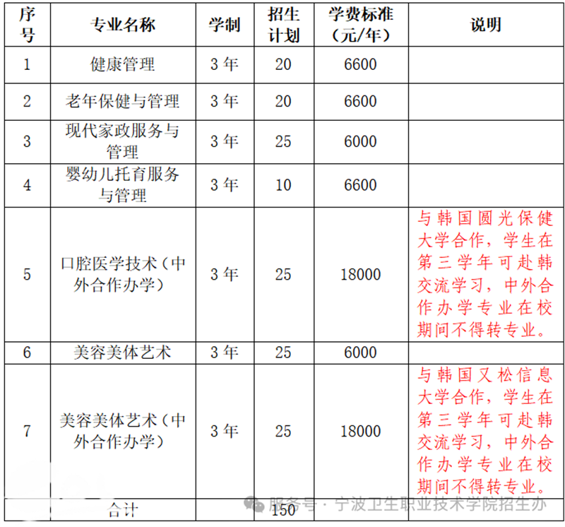 答:学校2026年面向浙江省应往届普通高中毕业生共计150名,具体如下:
