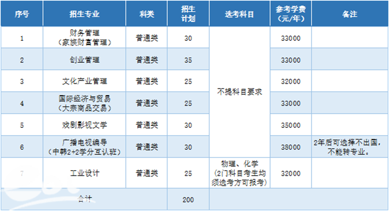 费用标准:1.国内学费:宁波财经学院所学专业四年学费。2.国外学费及其他费用:学费760万韩币/年;学费+生活费约6.5万人民币/年(以学校当年公布学费为准)。
