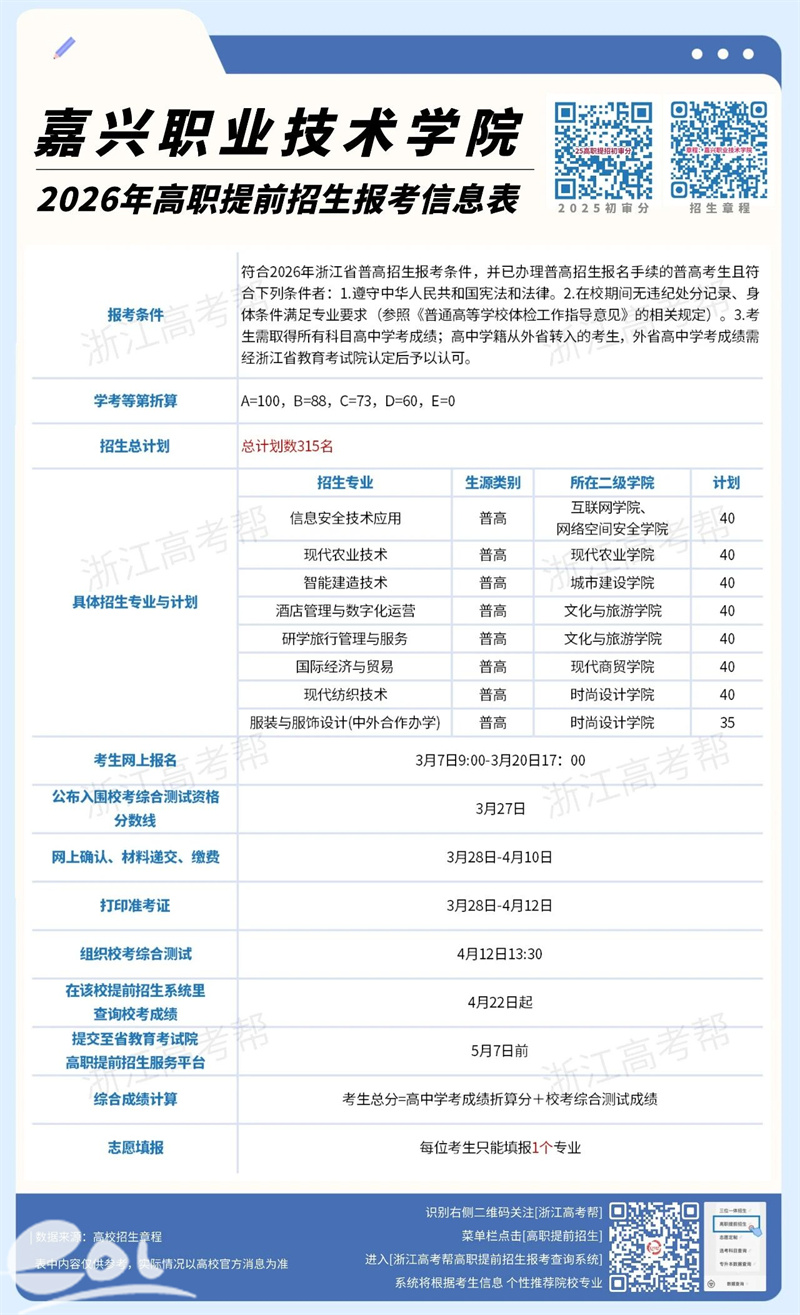答:2026年,面向高职提前招生计划共315名,均面向普高招生,共8个招生专业,具体详见下表。