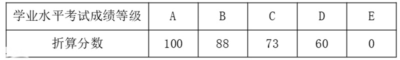 高中学考成绩折算分,是以高中学考成绩(以浙江省教育考试院提供的为准)作为计分依据,先按照下表2的折算办法进行折算后,再实行“3+7”指定科目按相应权重计算得出高中学考成绩折算分。