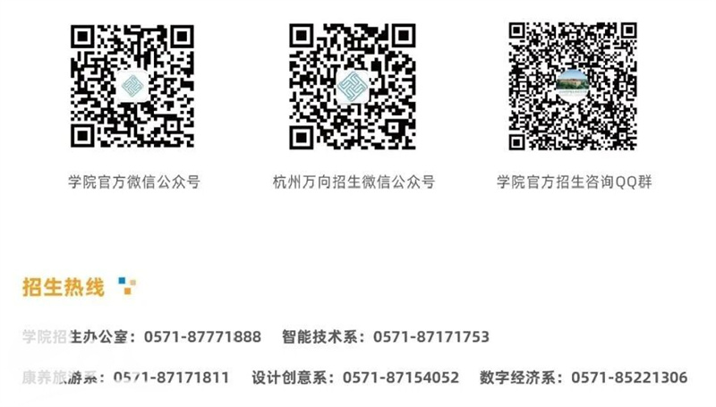 招生咨询地点:杭州市西湖区花蒋路3号杭州万向职业技术学院二号校区行政楼6212室(招生办公室)