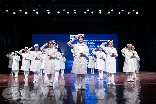 授帽仪式后,护理系师生为大家献上了一台精彩的演出。舞蹈情景剧《寻找提灯女神》讴歌了医护工作者救死扶伤、勇于奉献的精神;根据《成都》改变的歌曲,配合手语表演,创意十足,给大家耳目一新的感觉;相声《邹文王》取材贴合专业,幽默诙谐,令人忍俊不禁。最后师生互动歌曲《一次就好》深情诠释了师生对专业内涵的理解,将晚会推向高潮。