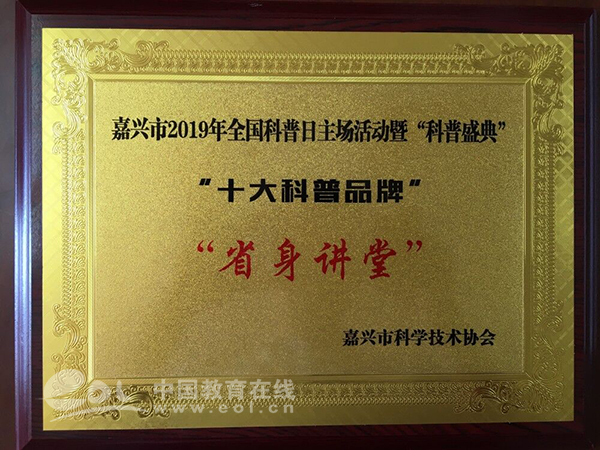 中国教育在线浙江站讯(记者 叶晨曦)9月17日下午,嘉兴市2019年全国科普日主场活动暨“科普盛典”在南湖音乐厅举行。中国科学院院士杨玉良,浙江省科协党组成员、副主席姜长才出席活动,嘉兴市委副书记孙贤龙出席并致辞。活动回顾了近年来嘉兴市在科普事业方面所取得的主要成就,并为嘉兴市“十大科普达人”“十大科普品牌”“十大科普活动”获奖人(单位)进行了颁奖。嘉兴学院“省身讲堂”获评2019年度嘉兴市“十大科普品牌”。