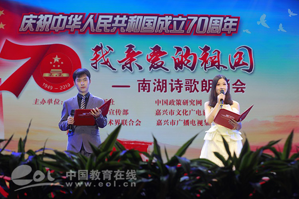 据悉,庆祝中华人民共和国70周年“我亲爱的祖国”——南湖诗歌朗诵会是由国务院研究室中国言实出版社、中国政策研究网、中共嘉兴市委宣传部、嘉兴市文化广电旅游局、嘉兴市文联、嘉兴广播电视集团和嘉兴学院联合主办。活动以诗和歌的形式回顾了新中国70年取得的辉煌成就,抒发了对伟大祖国的深厚情感。