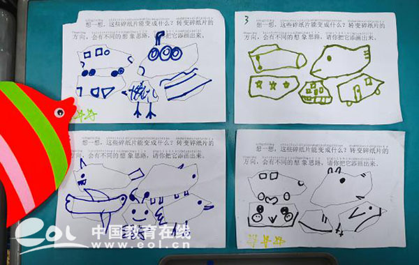 画画可是小哪吒们平时最喜欢的,瞧,加上孩子们的想像,天马行空的创作,不规则的碎纸片,在我们妙笔下都生出了“花”。
