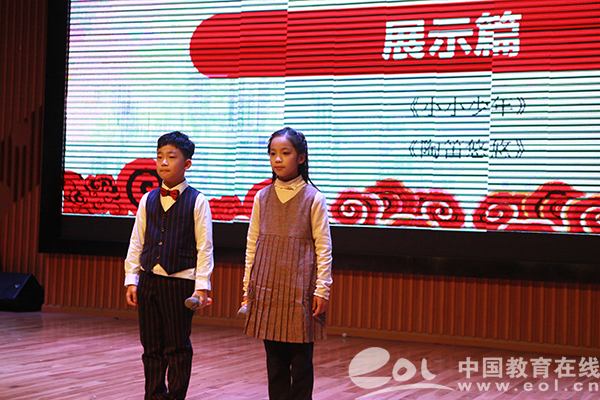 小小少年们的心中一定都有大大的梦想,闻涛学子们也期待有天自己能快快长高。403班的郭屹萱和405班的宋旻峻为大家带来了精彩的重唱表演《小小少年》。