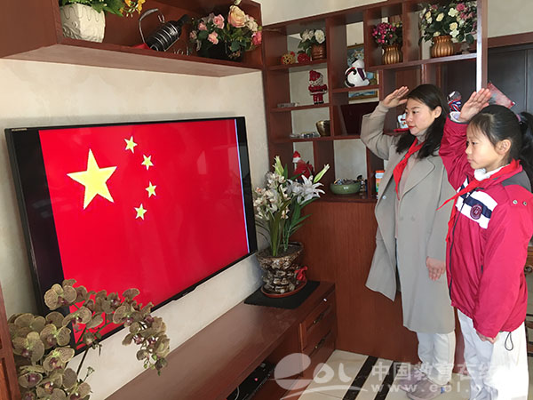 中国教育在线浙江站讯(记者 邱彬鑫 通讯员 孙凤瑶)周一应当是学校举行升旗仪式的时间。如果是往常,小学生们肯定是穿戴整齐,肃立操场,看国旗在国歌声中冉冉升起。但是今年由于疫情影响,杭州市的大中小学还不能正式开学。杭州市澎博小学充分利用互联网资源,在这特殊的日子里,将同学们聚在一起“网约”升旗。