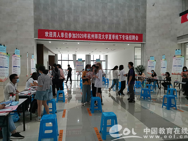 中国教育在线浙江站讯(实习编辑 陈昊昱 通讯员 陈鑫 谢静)30余家用人单位走进杭师大揽才。6月10日下午,杭州师范大学联合浙江省人才市场在仓前校区举行疫情之后的首场线下招聘会。