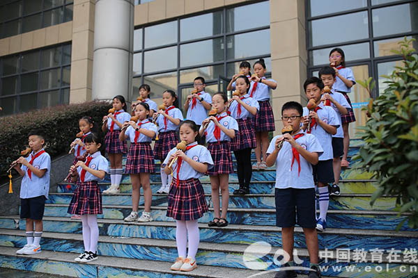 走入潮广场,高年级的哥哥姐姐用一阵阵悠扬动听的葫芦丝乐声欢迎着一个个萌新“小水滴”。在东二,葫芦丝作为特色课程,几乎是人人会的必备技能,在开学这一天奏起乐声,更是象征着东二的特色。