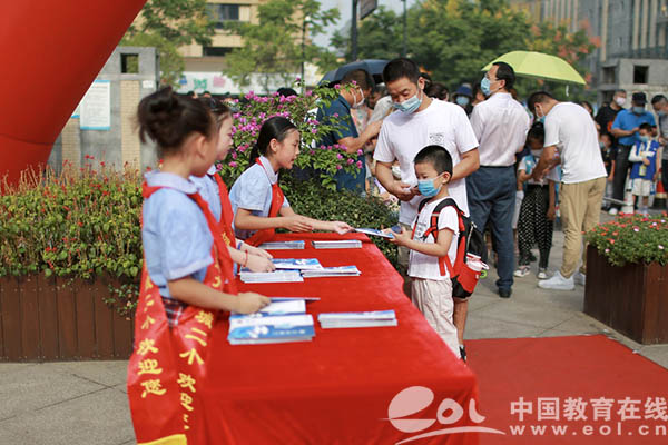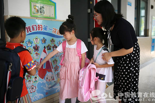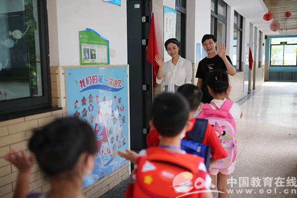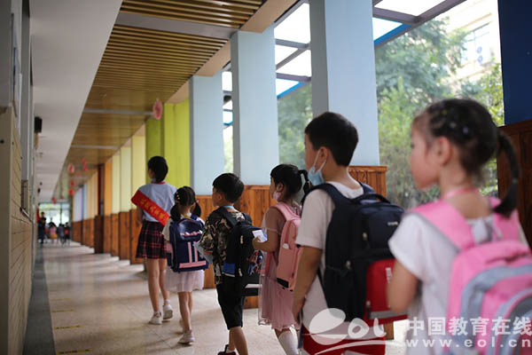 紧接着,孩子们就要挥别家长,跟着礼仪队的哥哥姐姐们,走向属于自己的教室了。