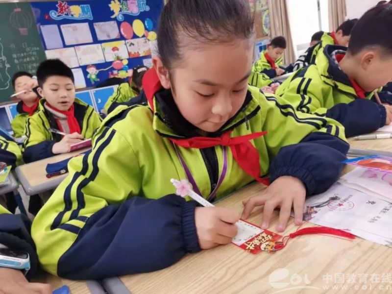 新学期,每个同学都有一大堆的话想对自己身边的老师、同学们说的,大家纷纷把自己的祝福写在书签上,说出自己的心里话。