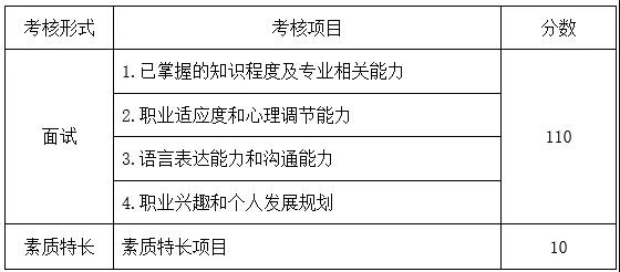 综合素质测试成绩由面试成绩和素质特长成绩组成,满分120分,测评成绩保留两位小数。空中乘务、民航安全技术管理、安全生产监测监控专业均采取面试形式。面试由学校自主命题和组织,具体见表3: