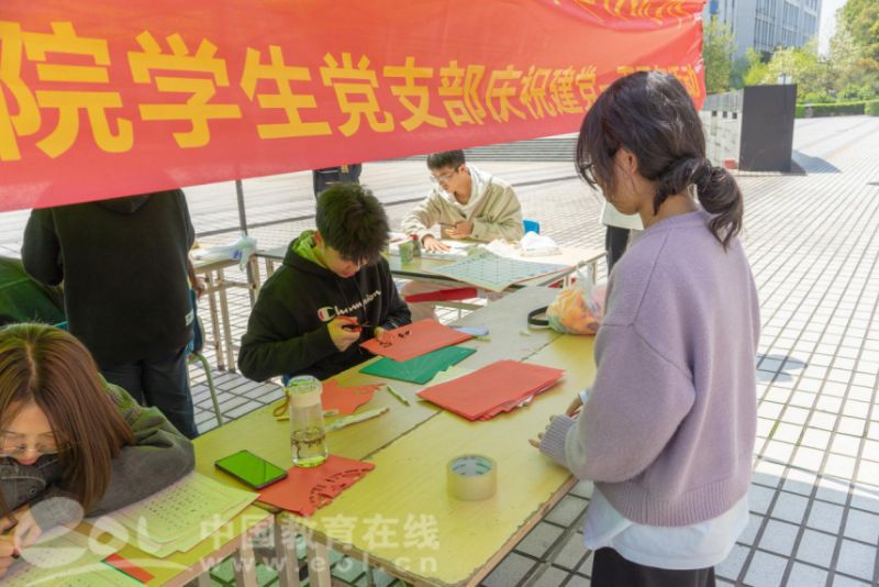 中国教育在线浙江站讯 (实习记者 鲁少辛 通讯员 姚一娴)为庆祝中国共产党建党100周年,浙江经济职业技术学院数字信息技术学院学生党支部开展了“书写辉煌党史,剪出百年风采”主题党日活动,通过书法和剪纸的艺术形式抒发爱党情怀。