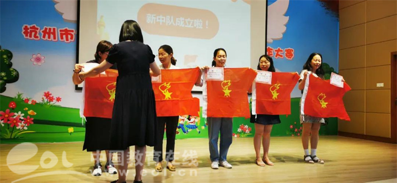 随后金副校长为五位新聘任的中队辅导员老师授予聘书和中队旗。