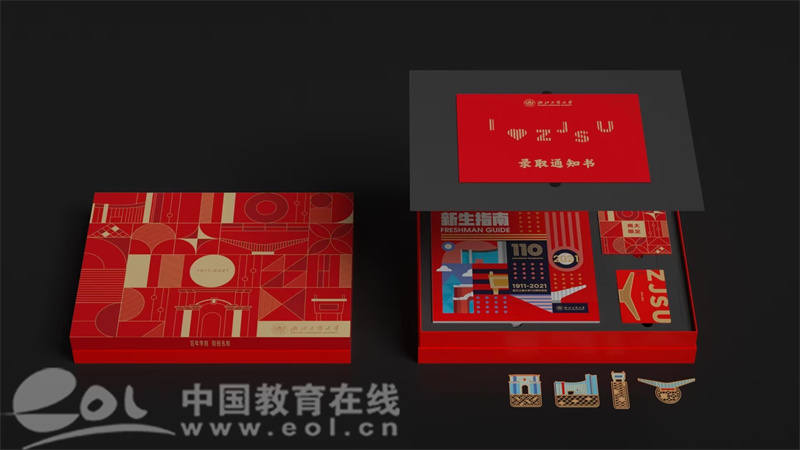 录取通知书以红金色为主色调,其设计来源于浙江工商大学校庆主题“同表东海,共创卓越”。在展示学校历史底蕴的同时,也表达对新生即将到来的喜悦。