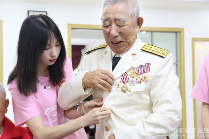 中国教育在线浙江站讯(记者 白菁洁 通讯员 姚敏明 洪思颖)“我这辈子最自豪的一件事就是飞了一辈子的战斗机。”近日,在宁波市朝晖休养所,“光荣在党50年”纪念章获得者、革命老兵赵永松为浙江工商职业技术学院“红忆甬存”小分队的同学们讲述了他和“祖国的蓝天”的故事。