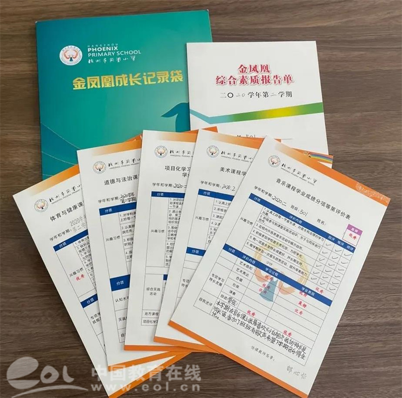 考试方式变了,评价也发生了变化。凤凰小学从“无分”期末成绩评定方法走向金凤凰综合素质报告单。2017年,这一张小小的学生期末成绩单,让学校开启了破解“唯分数”的评价变革,2021年3月,“无分成绩单”成为教育部表彰的11个典型案例之一。《义务教育质量评价指南》颁布之后,学校立即启动了五育融合式的综合素质评价体系研制。