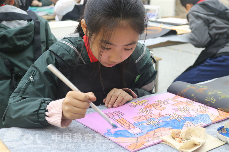“版画创作确实不容易的,要刻画出画面再进行拓印,你们对于画面的构思要很清晰”“在刻画之前最好先打草稿,做到胸有成竹”“画面适当的留白还是需要的,不要让画面太满,突出重点”赵宗藻老先生非常认真地欣赏着孩子们的版画作品,同时,还向孩子们传授宝贵的创作经验和技巧。