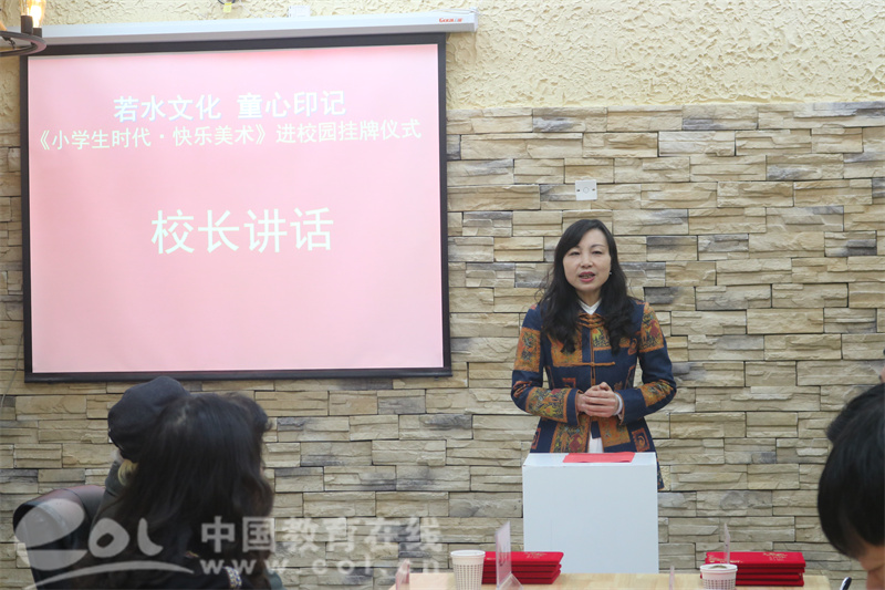 洪俊校长随后发言。她表示,“若水文化 大美艺术”是京都小学的办学特色,美术类的版画课程、陶艺课程都是市区精品课程,这学期光是美术类拓展性课程就达到了12门。“今天,美术教学基地授牌后,将会给同学们和老师们提供更多的学习机会,搭建更高的展示平台,相信通过大家的共同努力,孩子们能提升艺术素养,成为五育并举的水德少年。”