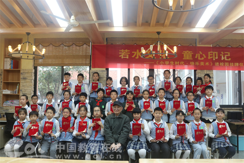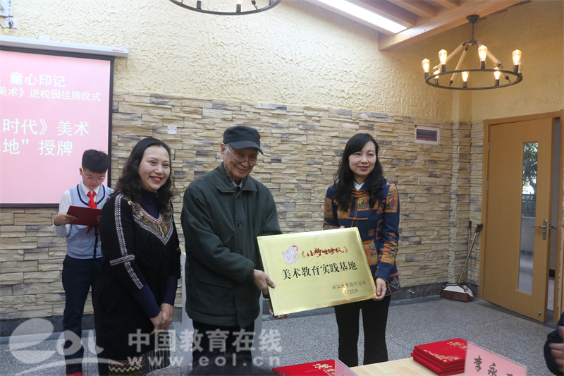 版画课结束后,学校还举行了《小学生天地·快乐美术》美术教学实践基地授牌仪式。