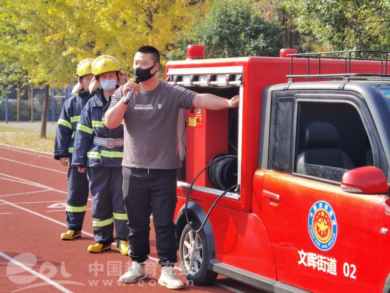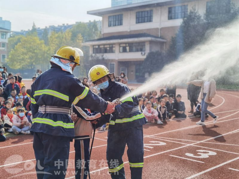 中国教育在线浙江站讯(记者 张可宁 通讯员 叶声伟)11月16日,大成实验学校联合文晖街道进行了本学期第二次消防安全综合演练,本次综合演练共分“应急疏散”、“ 小型消防车灭火展示”及“学生使用灭火器灭火演练”三块内容。9点30分,学校紧急疏散铃声响起,所有学生在班主任老师、年级组长的指挥下,按照疏散路线快速有序的撤离至足球场。随后,文晖街道微型消防站站员为学校全体师生进行了干粉灭火器使用讲解并进行了小型消防车灭火展示,一至四年级的学生体验了小型消防车灭火装置,五至九年级学生进行了灭火器灭火演练。