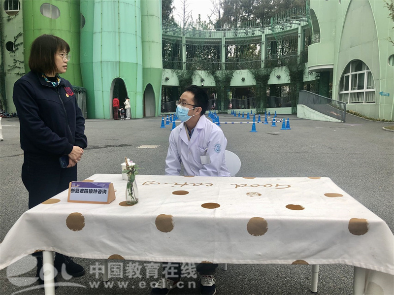 学校邀请了石桥街道社区卫生服务中心医生赴园做“新冠疫苗接种”相关情况的现场咨询,宣传接种知识,消除家长顾虑。