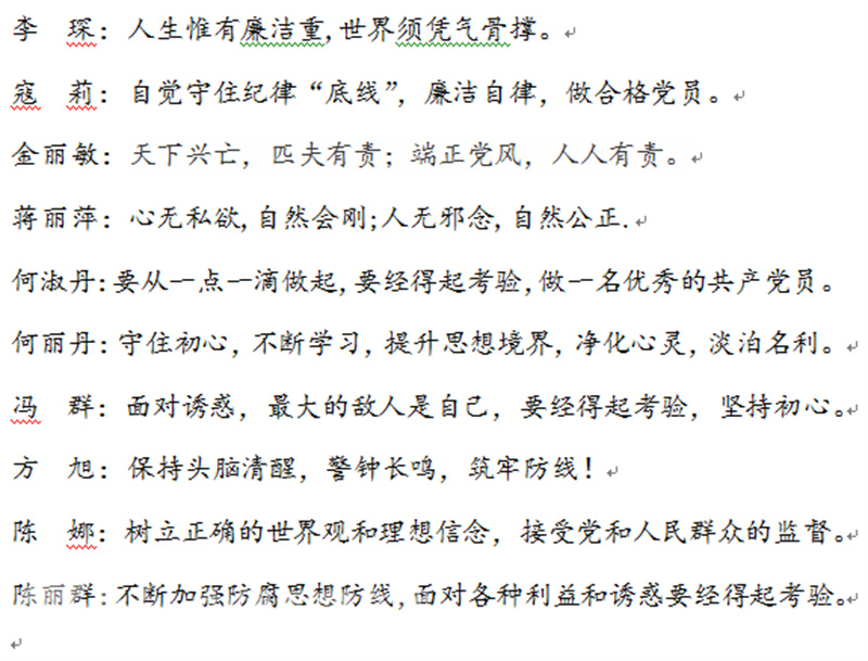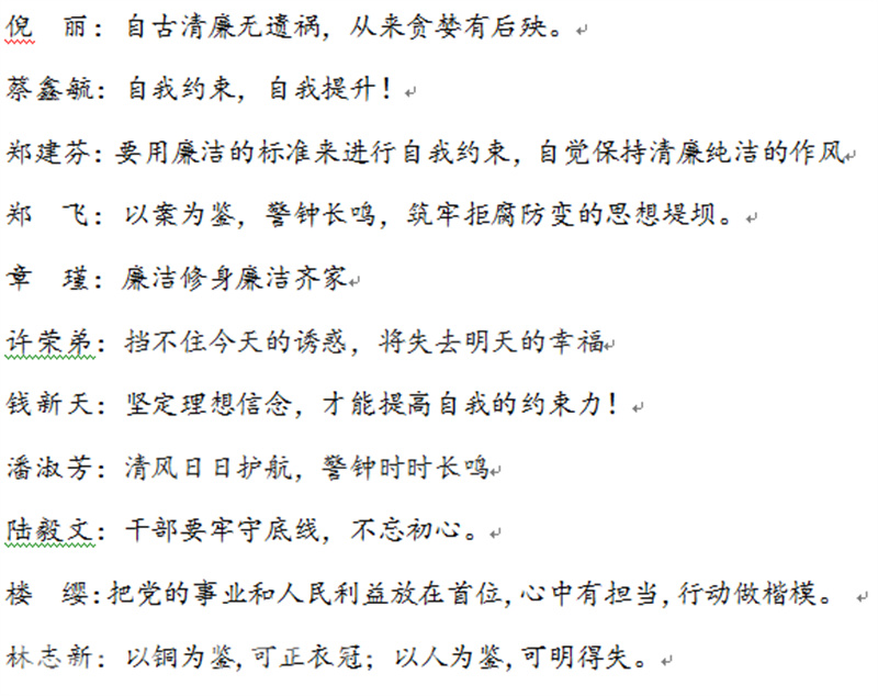 在党员固定活动日上,大关附小全体党员干部认真学习了《村社党员干部违法违纪典型案例》,以案为鉴,广大党员干部深刻认识了基层违纪违法问题的具体表现和严重危害,从而进一步提升了廉洁意识,警钟长鸣。学习会后,全体党员干部一句话点评了学习感受。