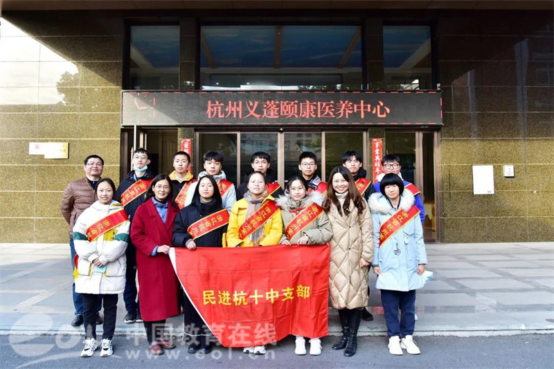 中国教育在线浙江站讯 (实习记者 鲁少辛 通讯员 夏欣)近日,在民进杭十中支部的牵头和组织下,杭州第十中学的学生前往钱塘区义蓬颐康医养中心看望43位五保护老人们。
