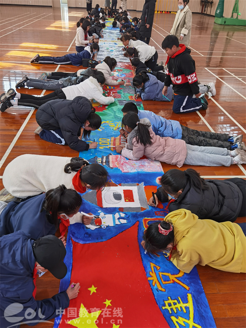 中国教育在线浙江站讯 (实习记者 鲁少辛 通讯员 叶声伟)12月31日,大成实验学校的学子们以画笔书画百米长卷的形式,迎接2022年元旦的到来。