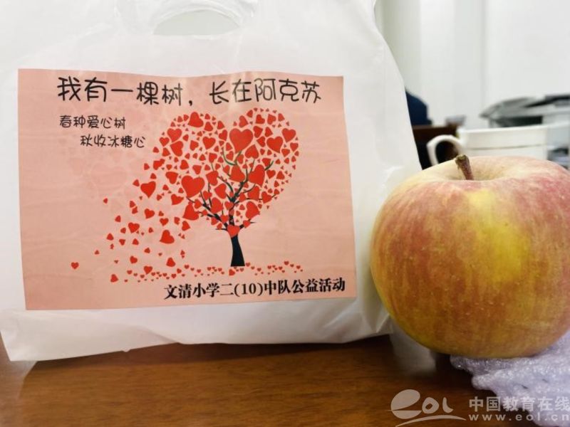 中国教育在线浙江站讯(记者 白菁洁 通讯员 许春燕)2022年伊始,杭州市文海教育集团文清校区麦田班(210班)的同学们收到了一份特殊的礼物——远在新疆阿克苏的果农们送出的冰糖心苹果。