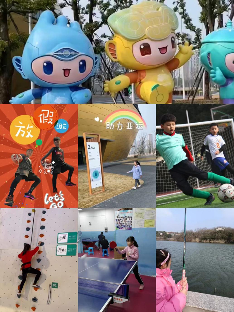 在没有寒假作业的形势下,孩子们有了更多的时间进行运动。今年又恰逢杭州举办第19届亚运会,305快乐中队提出“健康运动,助力亚运”的口号。首先每位同学都建立一个健康运动数据库,每天登记运动数据。除夕、大年初一我们都不放弃哦。通过数据库我们能看见同学们的坚持和进步,有些小朋友除了健康运动还参加了各种各样的体育运动项目:篮球,攀岩,乒乓球、足球、钓鱼等等丰富多彩的运动项目。接下来让我们来看看同学们运动的矫健身姿吧!