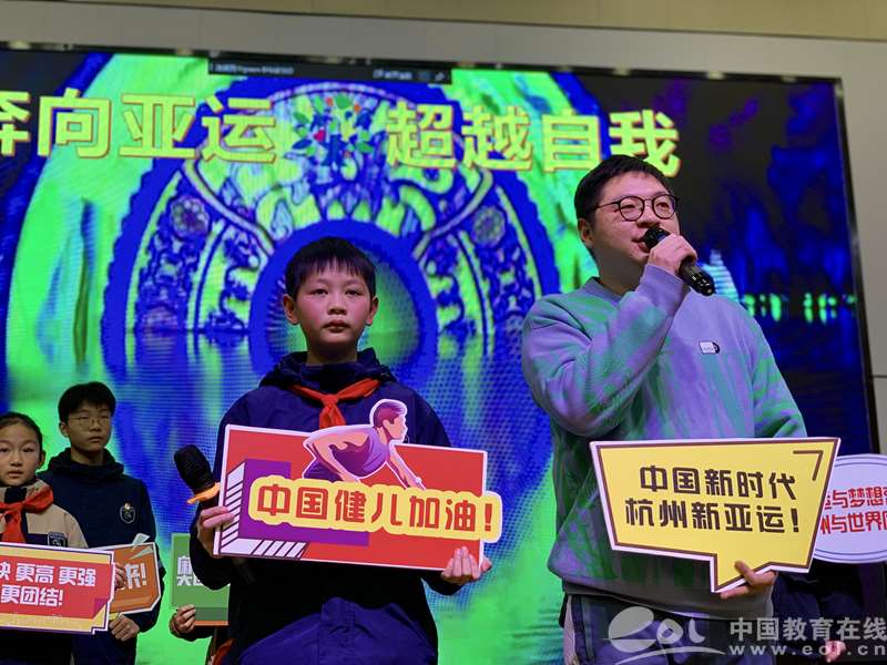 刚刚获得校园十佳“美好少年”称号的学生代表响亮地表达着他们对亚运会的期待与加油呐喊。“让我们以更快、更高、更强、更团结的奥运精神迎接亚运会!”“我们翘首以盼着,运动健儿们可以披荆斩棘,创造辉煌,让世界见证杭州的亚运魅力!”“精彩的冬奥比赛让我们更期待杭州亚运会。让我们以‘亚运小主人’的姿态迎接亚运会,为亚运加油!”
